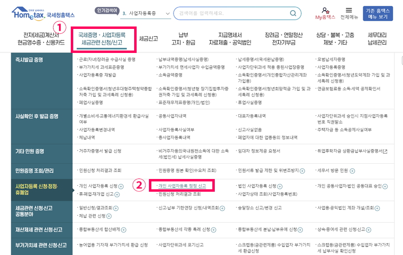 홈택스에서 사업자등록 정정 신청하기