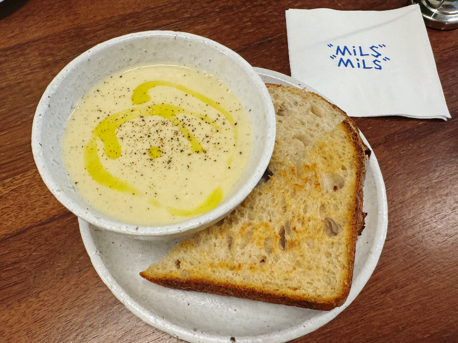 소시지번도 맛있었지만 예상되는 맛이었던지라 오히려 별 기대 없이 주문했던 대파수프가 정말 맛있었습니다. 같이 나오는 토스트 된 사워도우도 수프와 너무 잘 어울렸답니다~