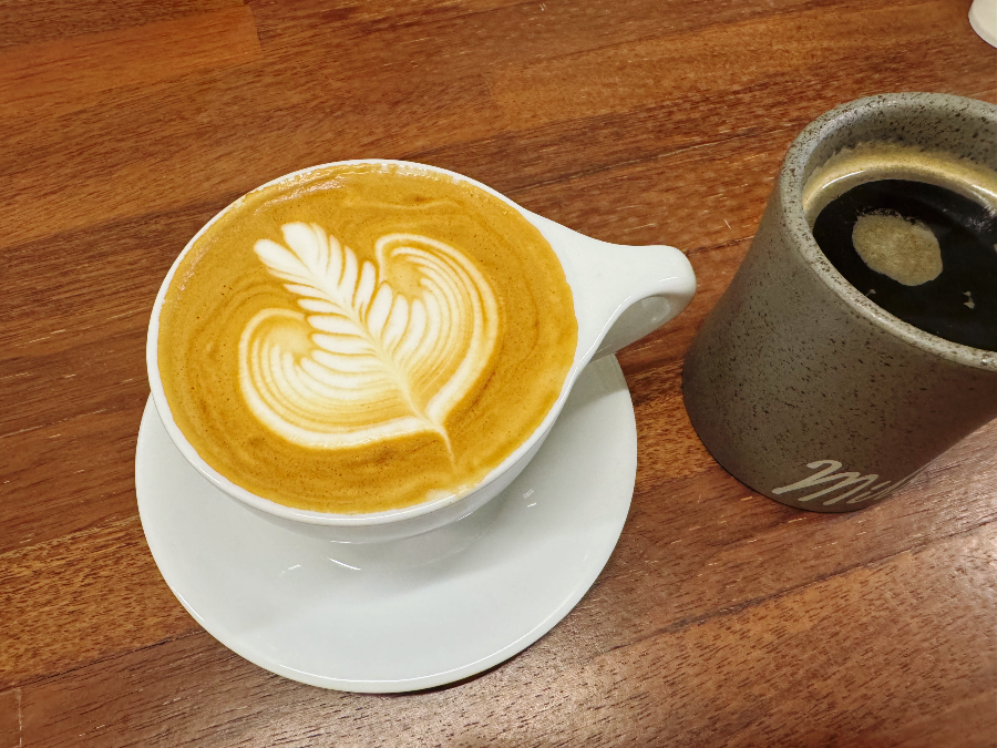 라떼도 어찌나 이쁘던지~ 친구가 잘 만들어진 라떼아트는 커피를 다 마실 때까지 아트가 남아있다고 했었는데요. 진짜인지는 모르겠지만 커피를 다 마실 때까지 나뭇잎 모양이 남아있었답니다 :-)