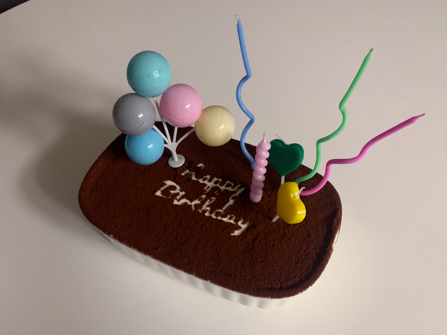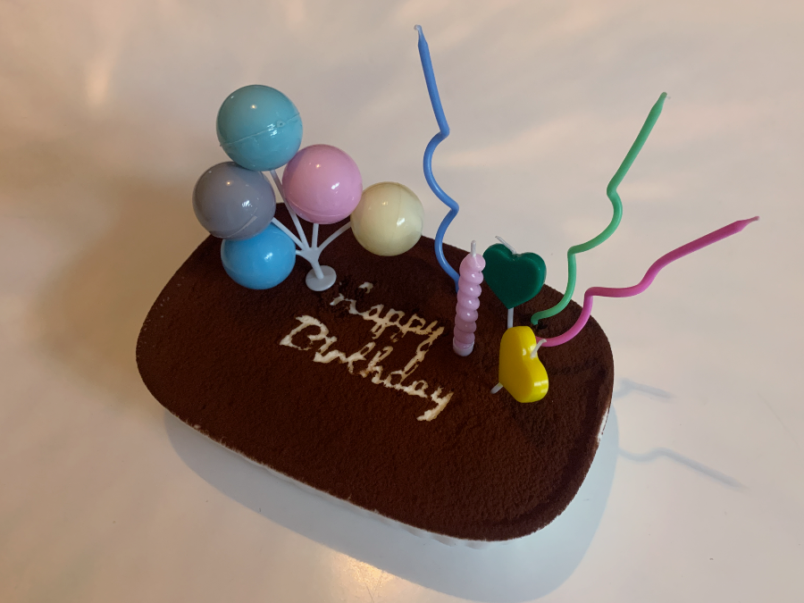 티라미수에 초를 꽂아서 생일케이크로 만들어봤는데요. 종이를 활용하면 글자 대신 하트를 넣을 수도 있고 캐릭터 얼굴을 넣을 수도 있답니다. 초콜릿파우더와 종이를 사용해서 다양하게 변형해 보세요~
