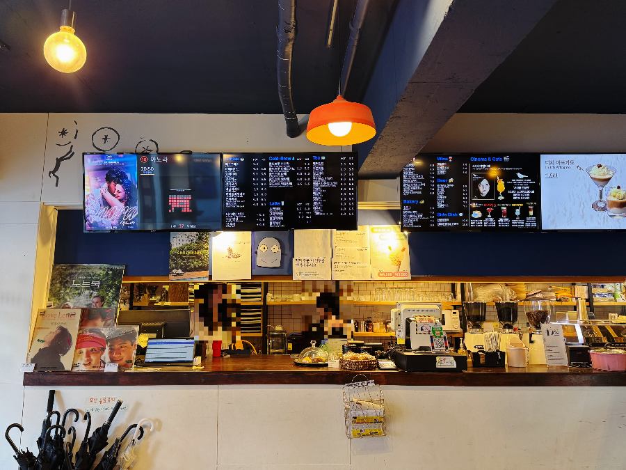 영화관 티켓구매는 인터넷 예매도 가능하고 현장에서도 가능합니다. 현장 발권은 1층 카페에서 하면 된답니다.
