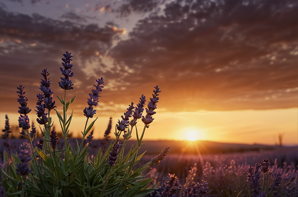 전 라벤더가 가득 피어있는 해가 지고 있는 들판 이미지를 붙여 넣고 영어로 상세하게 설명해 달라고 했답니다.