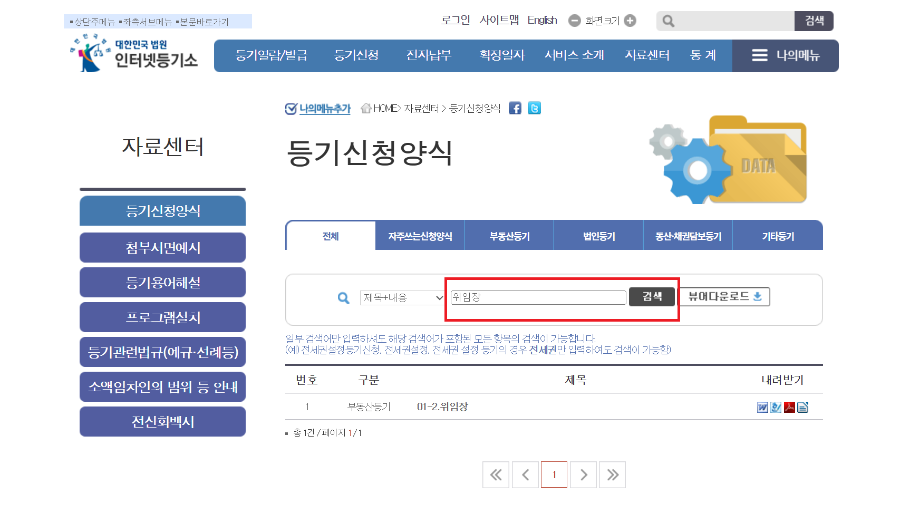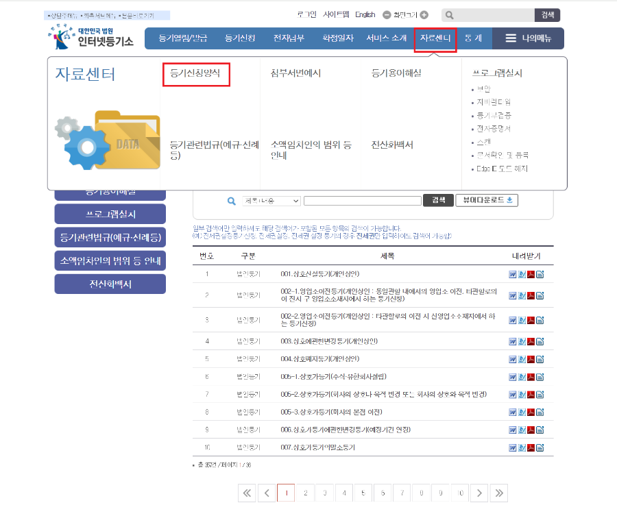 인터넷등기소 자료센터