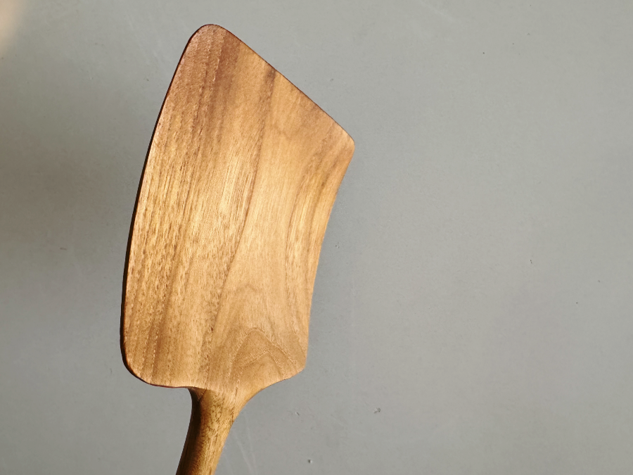 이 나무 뒤집개는 전체 면적이 넓고, 옆면은 얇고 둥글게 되어 있어 달걀말이를 만들면 어머나~ 신기하게도 너무 잘 말린답니다.