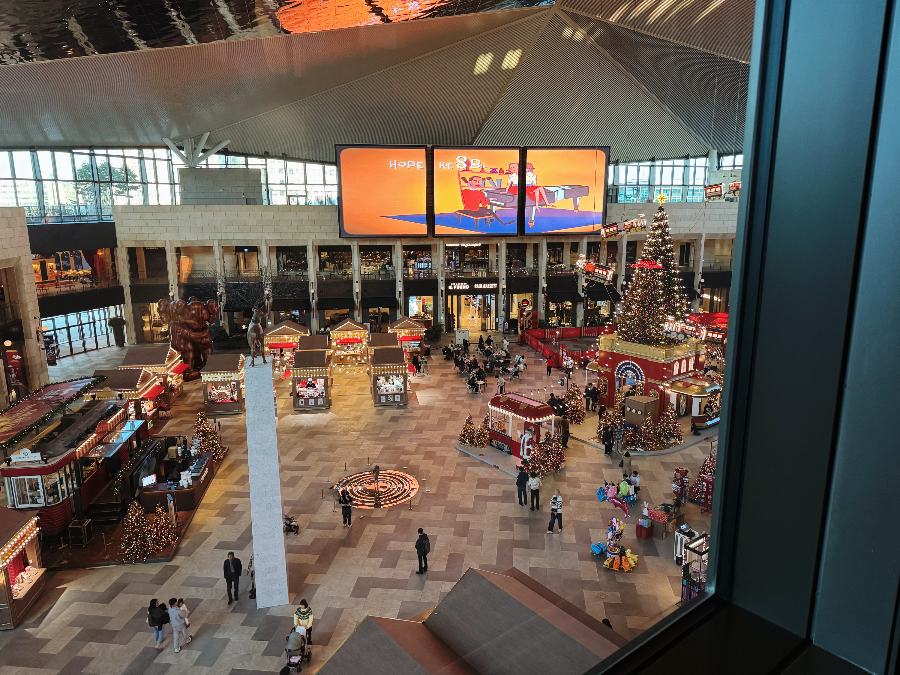 큰 창 밖으로는 이렇게 크리스마스 콘셉트로 꾸며진 플라자 광장이 보였답니다.