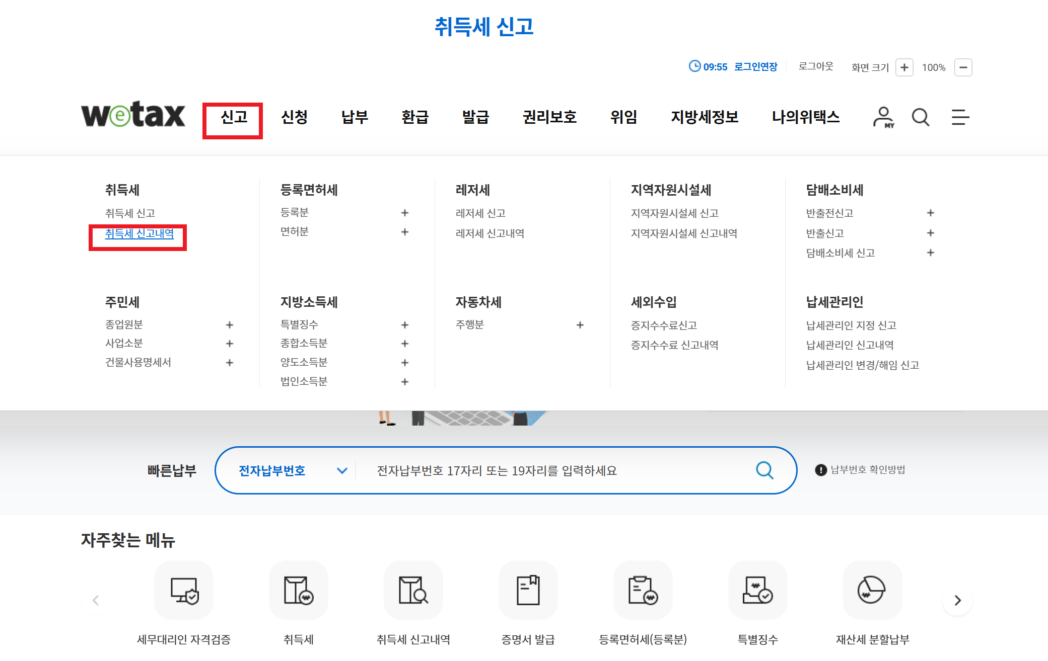 1. 위택스 취득세 신고, 납부 2. 취득세 납부확인서 출력 |
