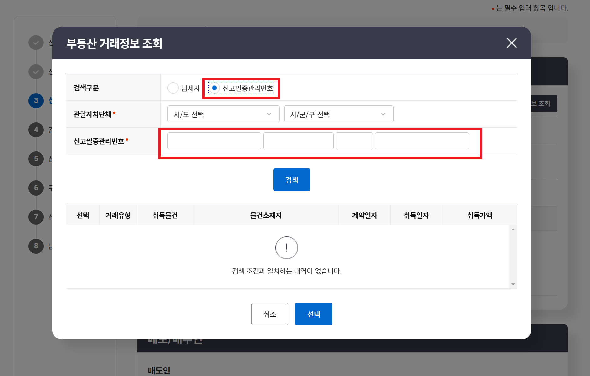 부동산 거래정보 조회에서 신고필증관리번호를 입력하면 거래정보가 조회된답니다.