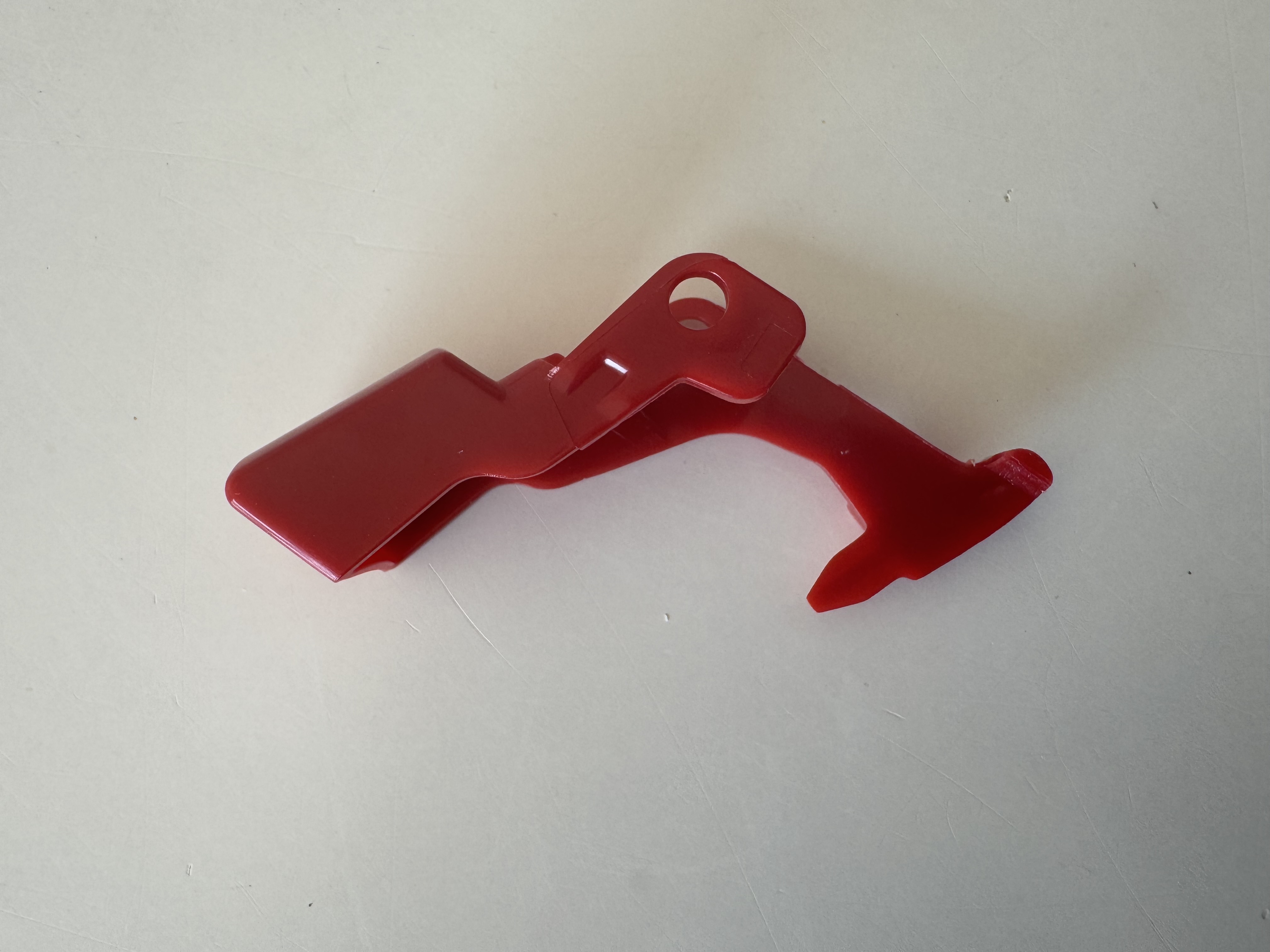 끼워준 고정장치의 빨간 레버를 뒤로 젖히면 전원버튼이 눌려져 손가락에 힘을 주지 않아도 청소기가 작동이 됩니다.