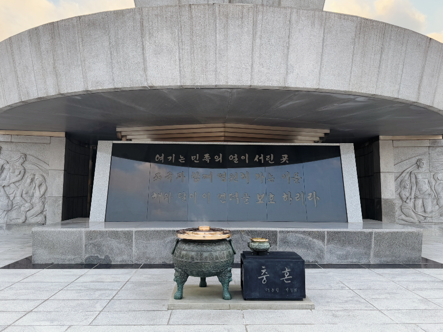 처음이라서 어떻게 해야 하는지 몰라 어버버 했었는데 다행히 단상에 있는 버튼을 누르면 음성으로 참배 안내를 해준답니다. 국화꽃을 단상에 올려놓고 참배 안내에 따라 향로에 향을 넣고 묵념을 했습니다. 날이 좋지 않은데도 묘소를 찾는 분들이 계셔서 짧은 묵념을 하고 서둘러 내려왔답니다.
