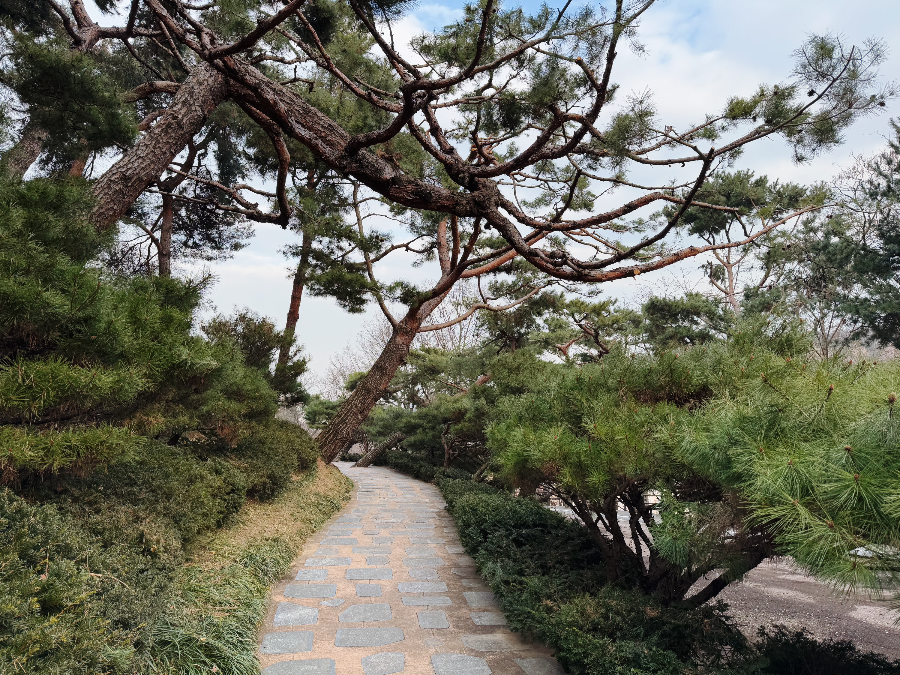 구불구불한 소나무 가지가 반겨주는 길로 들어서면 김대중 대통령님과 이희호 여사님의 묘소가 보입니다.