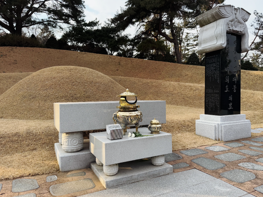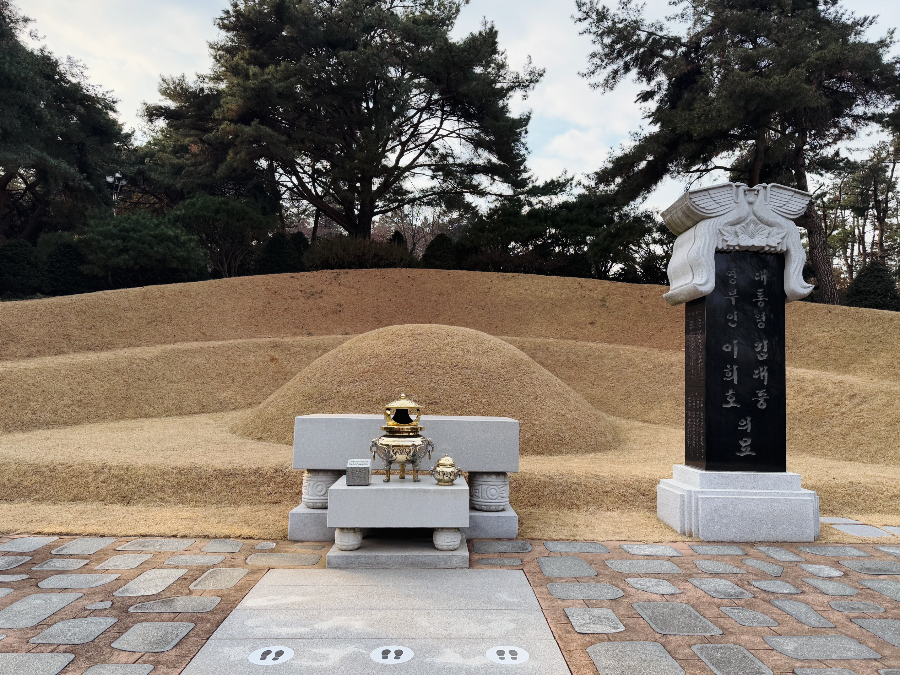 김대중 대통령님의 묘소는 오르막길 중간 정도에 위치해 있습니다. 영부인 이희호 여사님도 김대중 대통령님 곁에 안장되어 두 분이 함께 계시답니다.
