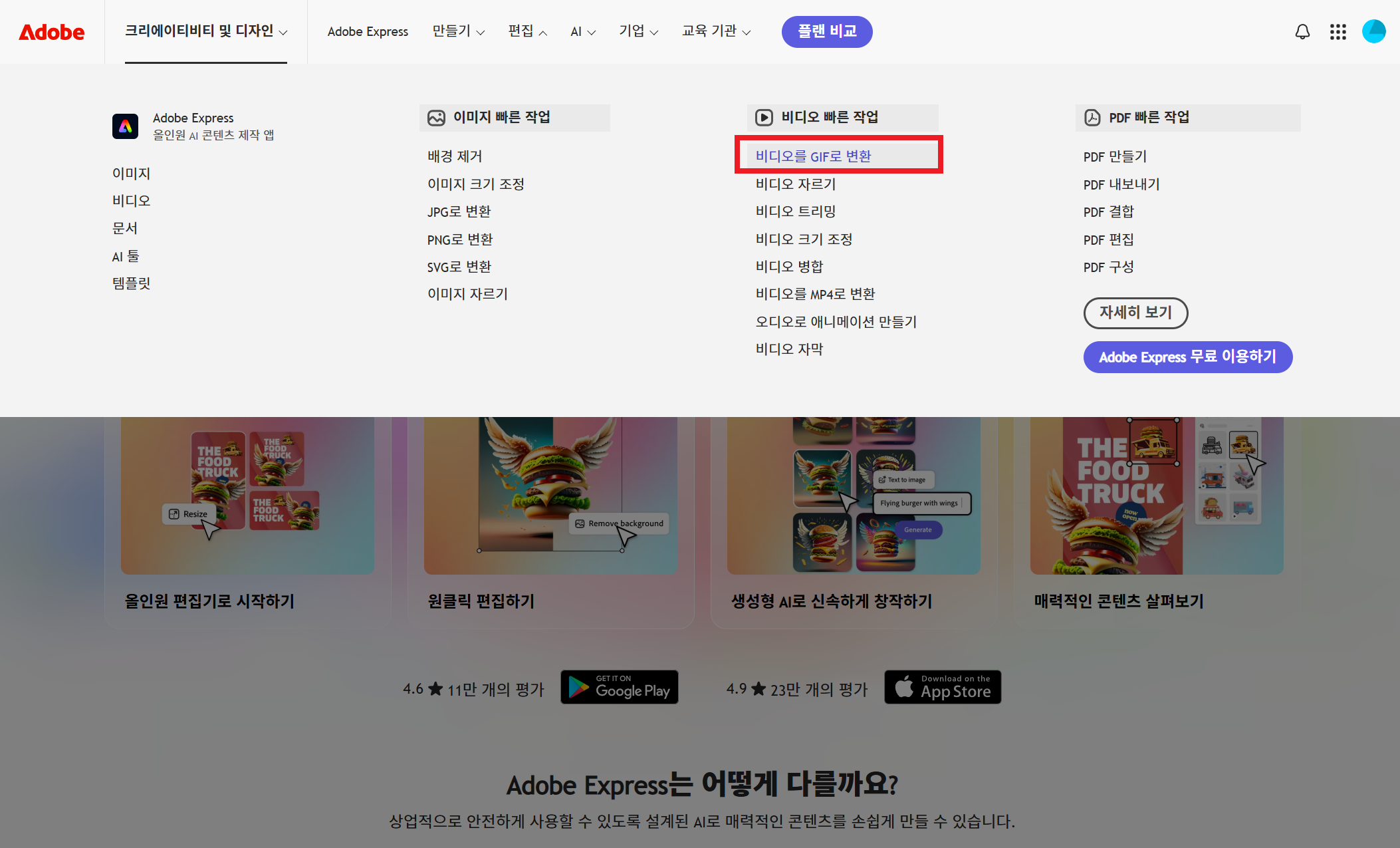 1. 어도비 익스프레스 2. 어도비 익스프레스 동영상 GIF 변환 |