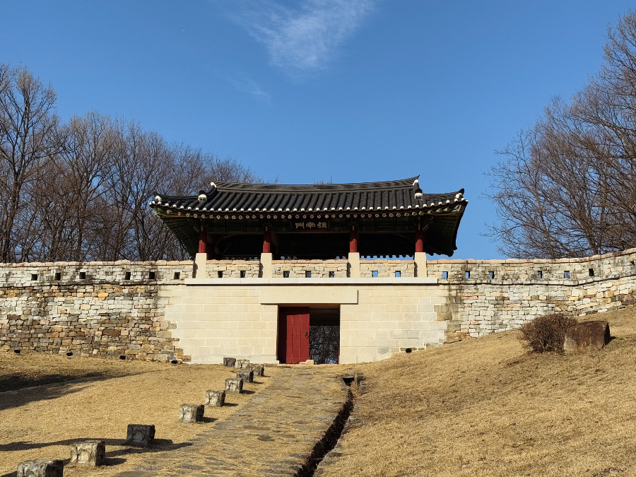이정표를 따라 조금만 올라가면 고모산성 진남문이 보입니다.