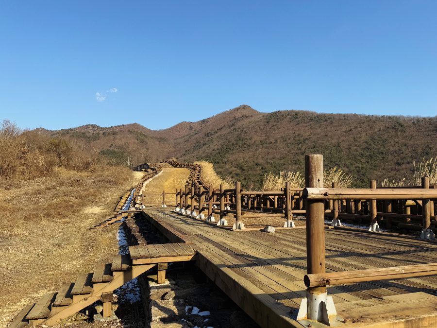 남문으로 올라가면 갈대가 멋있는 산성 정상이 나오는데요. 사방이 뻥 뚫려있어 전망이 시원하게 잘 보입니다.