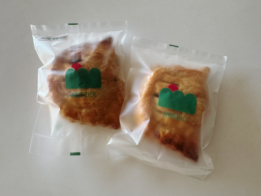 애플파이 속의 사과잼이 너무 실하고 맛있습니다. 기본보다 시나몬이 더 맛있었는데요. 계피향이 진하지 않아 오히려 기본 맛보다 상큼한 특색이 더해져 맛있습니다. 여러 겹의 패스츄리도 너무 두껍지 않고 고소합니다. 애플파이 속 잼이 많이 달지 않아 정말 맛있게 먹었는데요. 달고 짠 강렬한 음식을 좋아하는 짝꿍은 음.. 음.. 맛있긴 한데.. 라며 끝을 얼버무렸답니다.