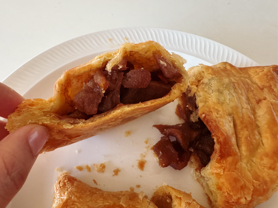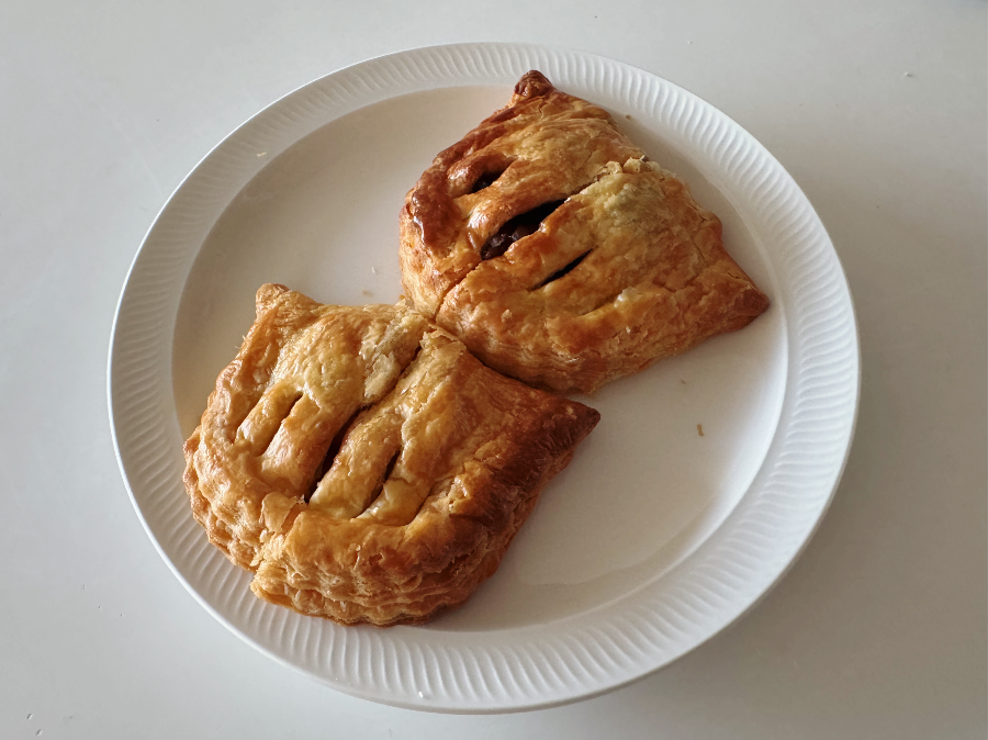 어머어머~ 거~ 사과알갱이가 너무 실한 거 아니오?? 흔히 알고 있는 으깬 사과잼이 들어있거라는 예상과 달리 커다란 사과덩어리여서 살짝 당황했는데 어머어머.. 식감도 좋고 많이 달지 않은데 맛있어서 또.. 당황했답니다. 먹기 전 오븐에 돌려서 먹으라는 이유가 있었는데요. 페스츄리가 바사삭 부서지는데 오븐에 돌리면 그 식감이 살아나기 때문이었어요~