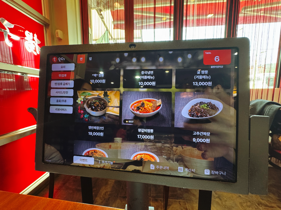 연말이라서 그런지 방송에 나와서 그런지 이번에 방문했을 때는 양자강 건물 앞 길가까지 차들이 주차해 있었는데요. 대기가 1시간 30분 정도 걸린다고 해서 헉!! 하고 되돌아갔다가 다음날 다시 방문했습니다. 다음날에도 사람들이 많았지만 30분 정도만 기다리면 된다고 해서 잠시 기다렸다가 드디어~ 왕갈비짬뽕을 먹고 왔습니다. 양자강은 캐치테이블에서 미리 예약도 가능합니다. 멀리서 오거나 대기가 많을 땐 예약하고 오는 것이 좋습니다. 저희는 그냥 왔다가 매장입구에서 예약하고 날씨가 추워 차에서 기다리다가 들어갔답니다. 주문은 테이블에 있는 화면을 터치해서 하면 됩니다. 왕갈비짬뽕은 면대신 왕갈비짬뽕밥으로 주문할 수 도 있습니다. 친구는 왕갈비짬뽕을 먹다가 공깃밥을 추가해서 먹었는데요. 왕갈비짬뽕에는 면이 많이 들어있지 않기 때문에 왕갈비짬뽕밥으로 드시는 것도 괜찮습니다.