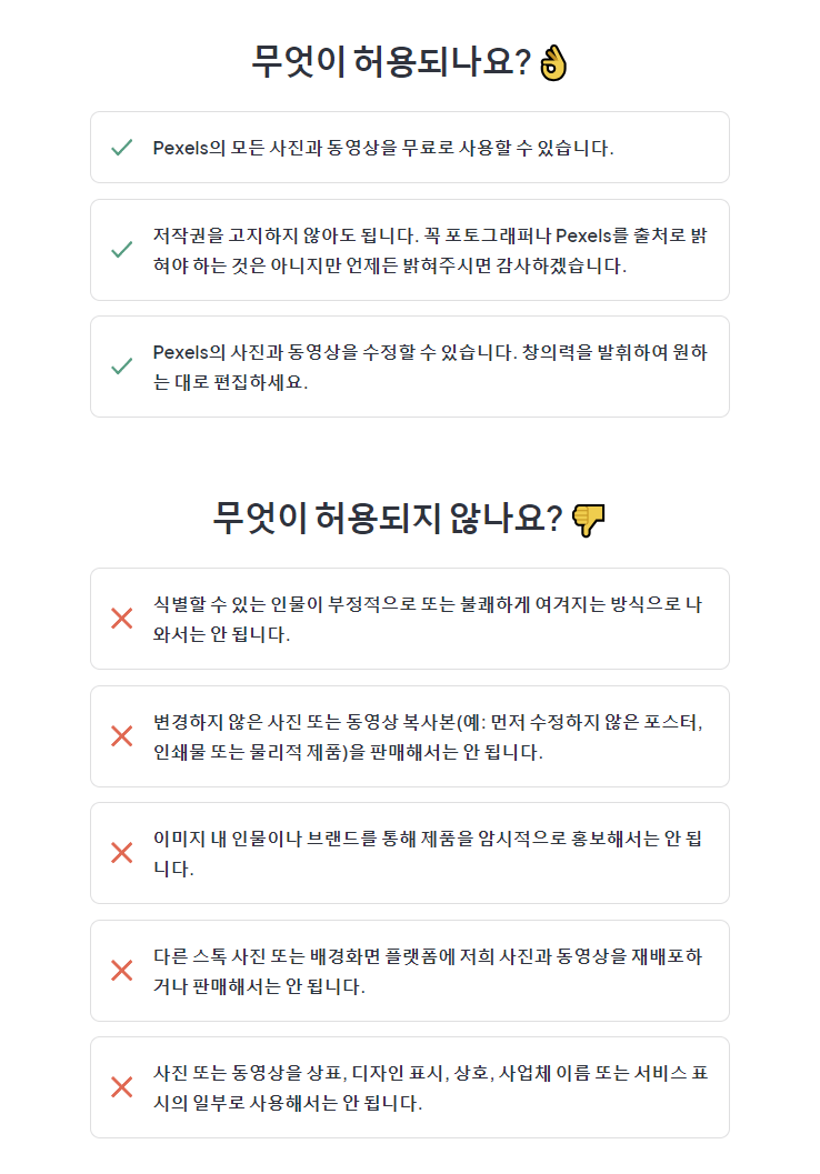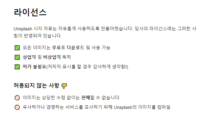 각 이미지 사이트의 라이선스에 대한 내용입니다.