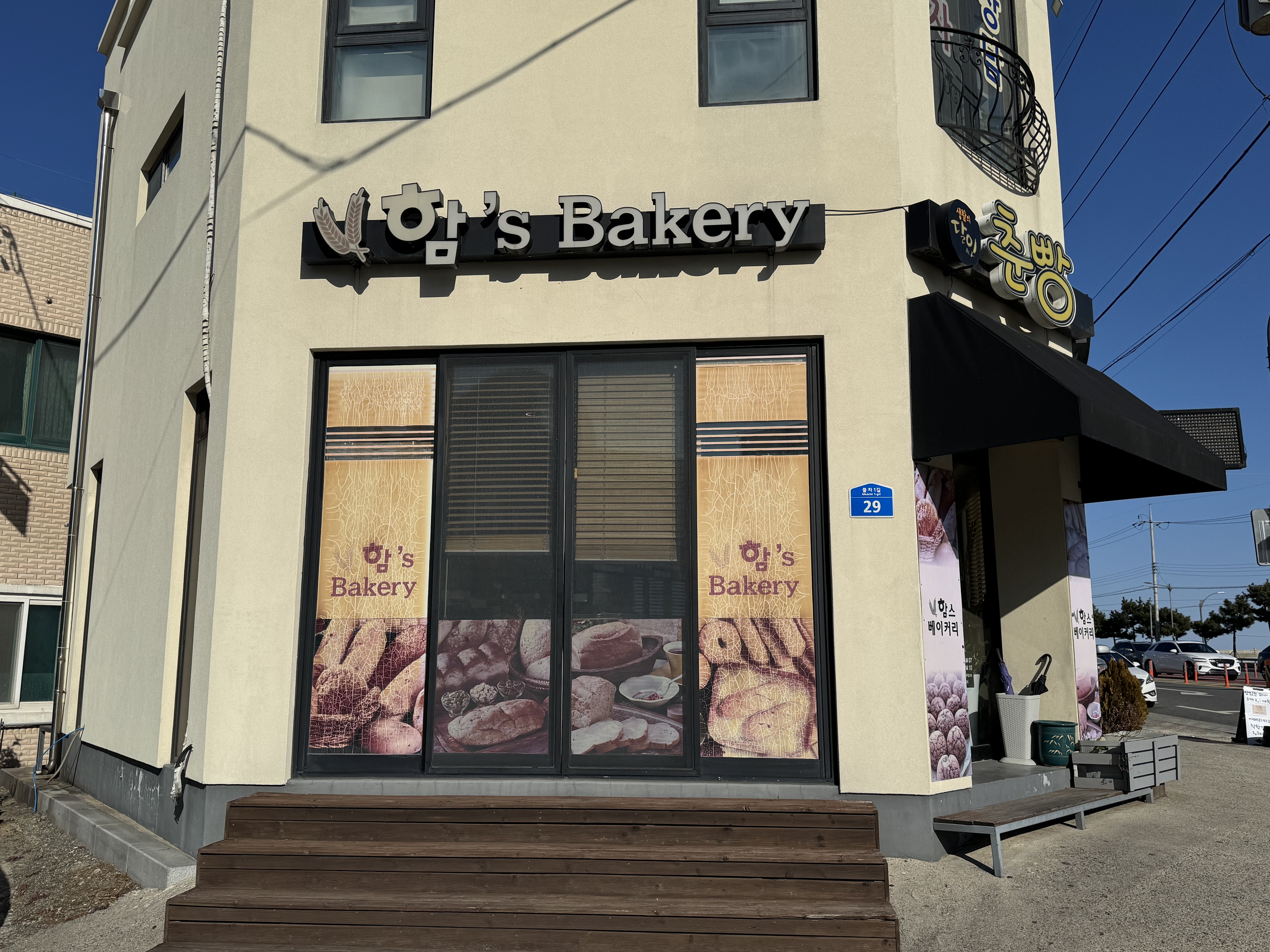 예전에 짝꿍이 생활의 달인에 나오는 걸 보고 가보고 싶다고 해서 방문했던 함스베이커리~ 그때 맛있게 먹었던 소보로 찹쌀빵이 생각나서 일부러 찾아갔답니다. 함스베이커리는 물치해수욕장과 가까운 곳에 있는데요. 작은 가게여서 가게 앞에 1대 정도 주차할 공간이 있긴 하지만 주차장은 따로 없답니다. 길 건너 하나로마트 건물이 이전을 해서 주차장이 비어있길래 잠시 주차를 하고 호다닥 빵을 사 왔습니다.