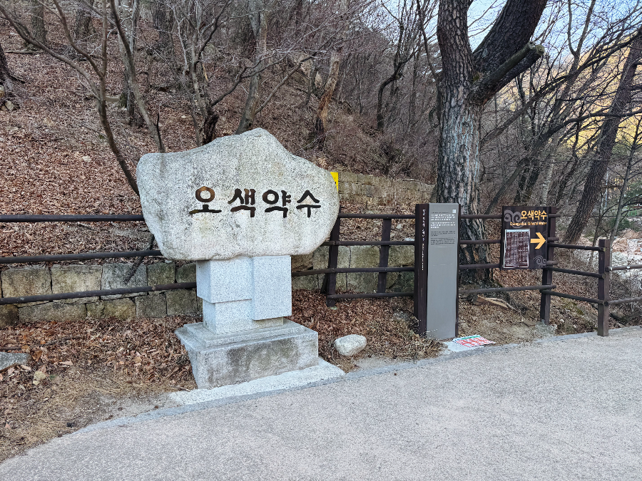 오색약수를 마시지 못해 못내 아쉬운지 손으로 구멍 속 약수를 덜어 맛을 보는 짝꿍.. 짭조름하고 철맛이 난다고 맛이 특이하다고 알려줍니다. 오색약수에는 나트륨과 철분이 섞여있다고 하더니 정말 짠맛과 철맛이 나나 봅니다 :-) 오색약수는 약수터에서 조금 떨어져 있는 절인 성국사 스님이 발견했다고 하는데요. 성국사 뒤뜰에 자라던 오색화라는 꽃이름 이름을 따서 오색약수가 되었다고 전해진답니다.