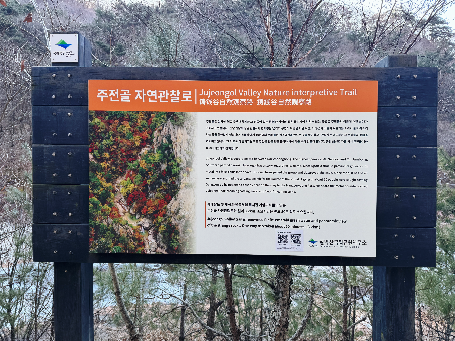 주전골 자연관찰로는 오색약수에서 성국사, 선녀탕, 용소폭포까지 총길이 3.2km인 트레킹 코스입니다. 소요시간은 편도 50분~1시간 정도라고 되어있는데 평소 운동량이 적은 성인 기준(저입니다..) 편도 1시간이 걸립니다.