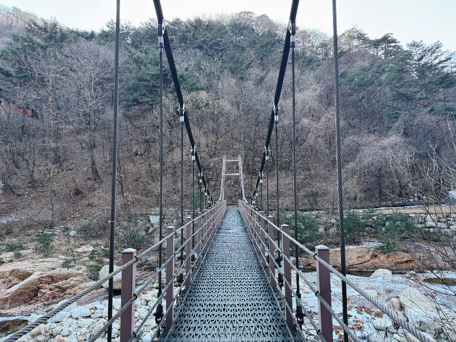 오색약수 위쪽에 있는 약수출렁교가 주전골 자연관찰로, 주전골 코스의 시작입니다. 출렁교는 짧지만 정말 출렁출렁거려서 건너는 동안 재미있었답니다. 사진도 한 컷 찍고 용소 폭포로 고고씽~