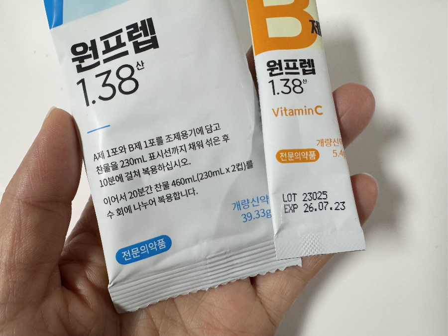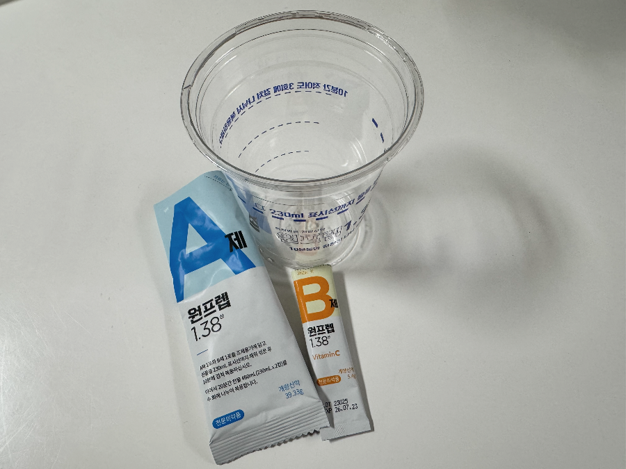 원프렙 1.38은 이름처럼 총 1.38l의 조제약과 물을 마시는 대장정결제입니다.