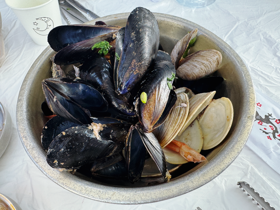 조갯살을 발라내고 이제 맛있게 먹으면 됩니다~ 해물뚝배기에는 홍합과 조개, 작지만 전복도 한 마리 들어있고 통통하고 싱싱한 새우도 들어있습니다. 해산물 아래에는 콩나물과 두부도 들어있어 뚝배기 한 그릇이 정말 푸짐합니다. 맑은 국물인데도 국물이 얼큰하고 시원한데요. 국물은 생선 살로 맛을 내는 것 같습니다.