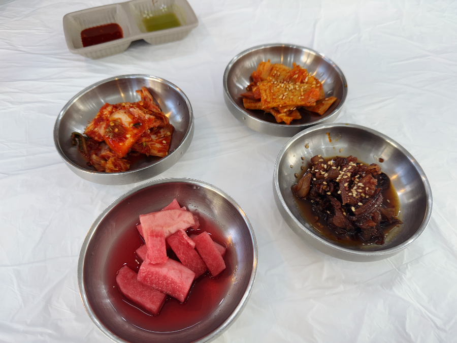 짝꿍과 전 맑은 해물뚝배기를 주문했습니다. 메뉴를 주문하면 기본 반찬을 가져다주시는데 반찬이 다 맛있습니다. 특히 마른오징어 볶음이 매콤하고 맛있었는데요. 고추장양념도 아닌데 매콤한 것이 자꾸 손이 갔답니다. 마른오징어 볶음은 따로 판매도 하고 있습니다. 마른오징어 볶음을 제외한 나머지 반찬은 셀프바에서 리필 가능합니다.