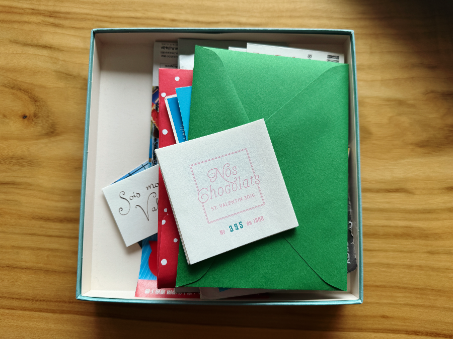 지금은 짝꿍이 편지보관함으로 사용하고 있는 2015년 원조 초콜릿 상자도 꺼내보았습니다. 삐아프에서 얼마나 공들여서 만들었는지 10년이 지났는데도 그대로입니다.