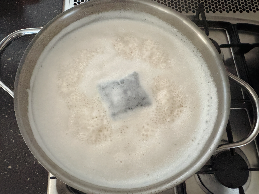 설탕이 녹은 우유에 티백을 넣고 중간불에서 10분간 잘 저으면서 끓여주세요. 우유가 쉽게 끓어 넘치기 때문에 불 조절을 잘하면서 티백을 우려야 한답니다.
