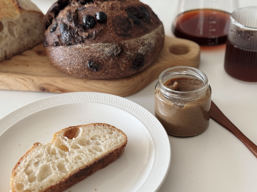 다음날 아침 갓 나온 빵을 사 와서 얼그레이잼을 쓱 발라 먹었는데요~ 달달구리한 것이 너무 맛있습니다~