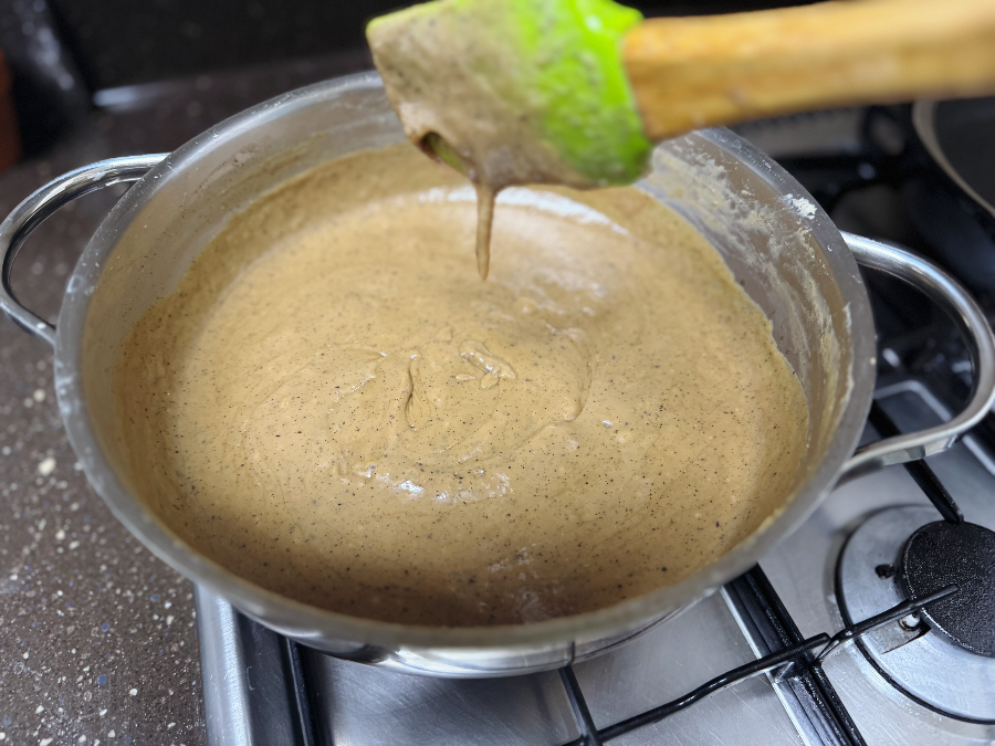 이제 계속 젓기만 하면 됩니다. 바닥이 눌어붙지 않도록 계속 바닥을 긁으면서 젓고 또 저어주세요~ 계속 휘젓다 보면 묽었던 우유가 점점 졸아든답니다.