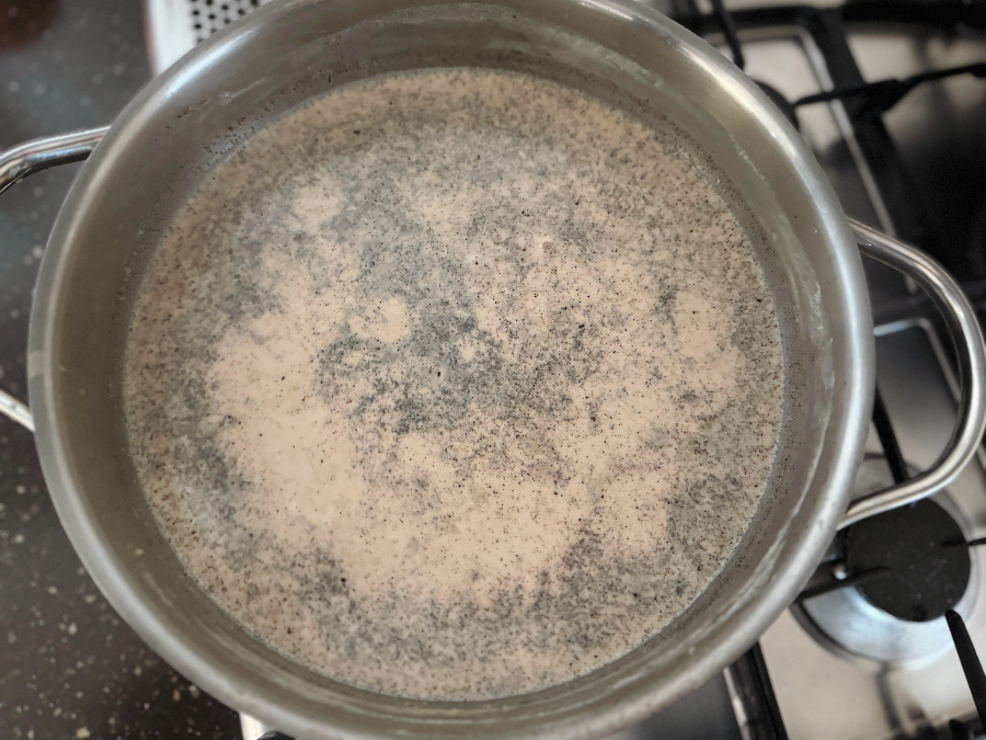 저는 잼에 얼그레이가 살짝 콕콕 박혀있는 것이 좋아서 10g에서 2g 정도만 미리 덜어내고 나머지만 티백에 넣어줬습니다. 2g은 티백을 우려낸 뒤 넣고 저어주면 되는데요. 잼에 잎이 씹히는 건 싫어서 돌절구로 마구 갈아줬답니다. 깔끔한 잼이 좋다면 티백만 넣고 차를 우려내 주세요.