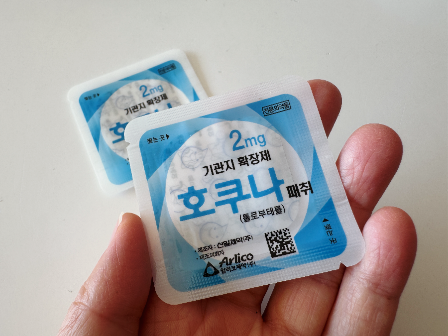 호쿠나 패치는 이번 겨울 내내 기침이 떨어지지 않던 짝꿍이 병원에서 받아온 처방약입니다. 기침이 심하지는 않지만 한 두 달 계속되니 의사 선생님께서 기관지 확장 패치를 한번 사용해 보자고 하시면서 처방해 주셨답니다.