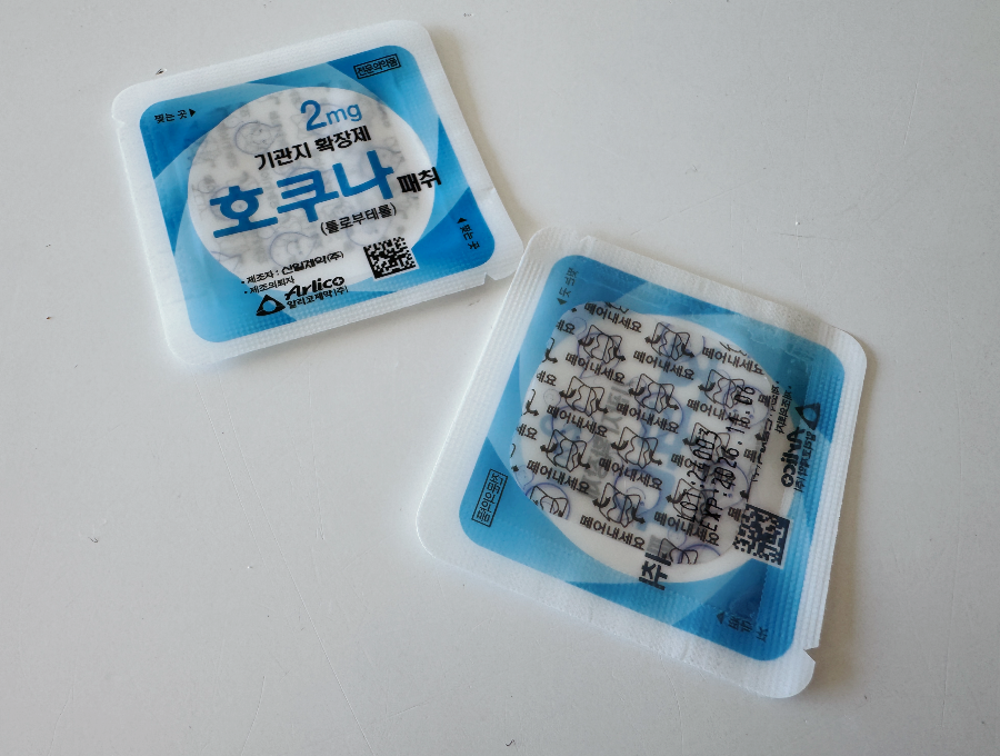 호쿠나 패치는 이번 겨울 내내 기침이 떨어지지 않던 짝꿍이 병원에서 받아온 처방약입니다. 기침이 심하지는 않지만 한 두 달 계속되니 의사 선생님께서 기관지 확장 패치를 한번 사용해 보자고 하시면서 처방해 주셨답니다.