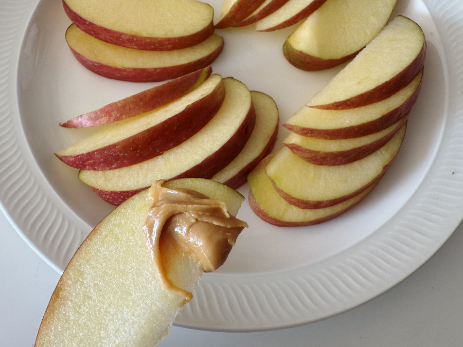 식빵 한 장에 땅콩버터를 얇게 펴 바르고 사과를 올려서 먹어봤는데요. 이 조합도 goooood!! 달콤하고 아삭한 사과와 부드럽고 고소한 땅콩의 조합이 이렇게 맛있는 거였군요~ 땅콩버터만 먹으면 목이 메일 수도 있는데 사과와 함께 먹으니 꿀떡꿀떡 잘 넘어갑니다. 사과와 땅콩버터는 맛있기만 한 것이 아니라 건강에도 좋다고 합니다. 사과에는 탄수화물, 비타민C와 칼륨이 풍부하고 땅콩버터는 단백질, 불포화지방, 비타민E, 니아신과 마그네슘이 풍부한데요. 서로 부족한 영양소를 채워주기 때문에 영양학적으로 균형 잡힌 조합이랍니다. 사과와 땅콩은 식이섬유가 풍부한 음식이기 때문에 혈당조절에도 도움이 된다고 합니다. 식이섬유는 소화를 할 때 혈당이 갑자기 올라가지 않기 때문에 인슐린 분비도 감소하고 조금만 먹어도 빠르게 포만감을 느끼게 되는데요. 그래서 사과와 땅콩버터가 다이어트 식단으로도 좋다고 합니다. 사과는 껍질 채 반 개에서 1개, 땅콩버터는 일일 권장 섭취량인 두 숟갈 정도를 먹으면 효과가 있다고 합니다~