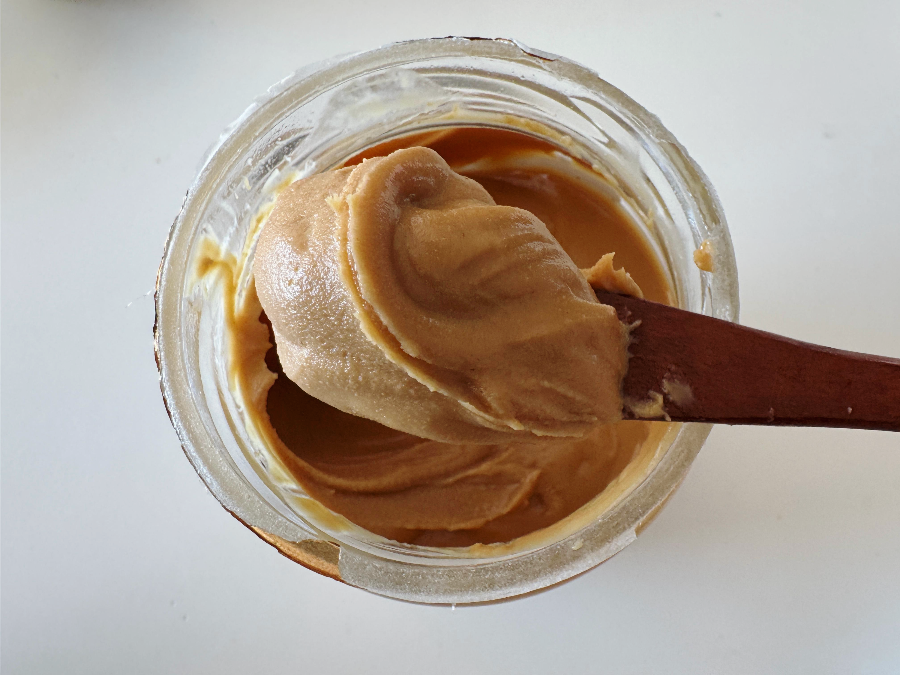 땅콩버터가 배송된 날 뚜껑을 열어보니 땅콩버터가 굉장히 묽고 위쪽에 기름이 약간 분리되어 있어 이상했는데요. 유화제 같은 첨가물이 안 들어있어 땅콩오일이 분리되면 층이 생길 수 있다고 해서 내용물을 위, 아래로 마구 섞어준 후 냉장고에 넣어 두었습니다.
