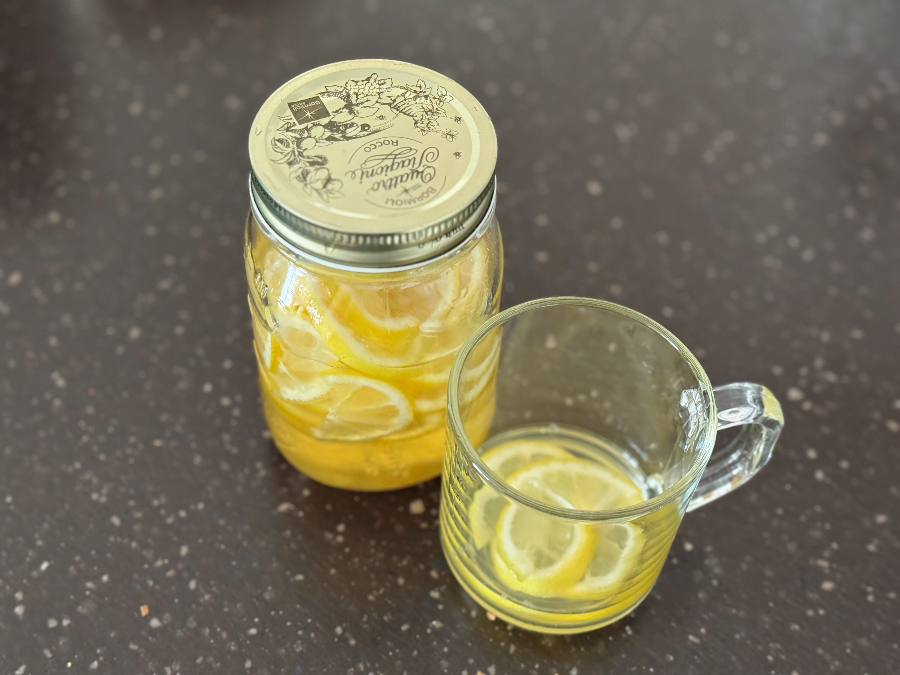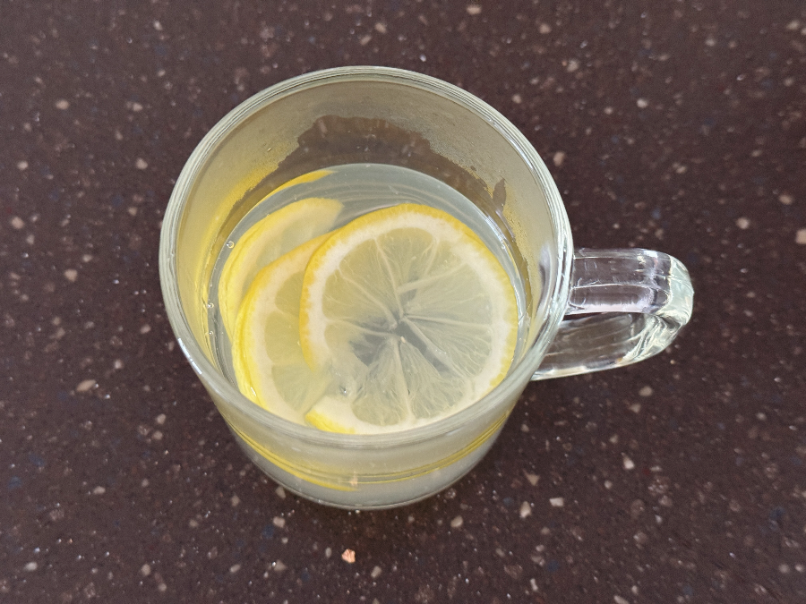 하루 뒤 레몬청에 따뜻한 물을 부어서 마셔 보았습니다.