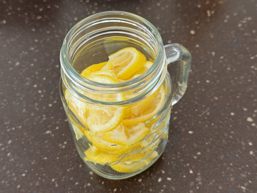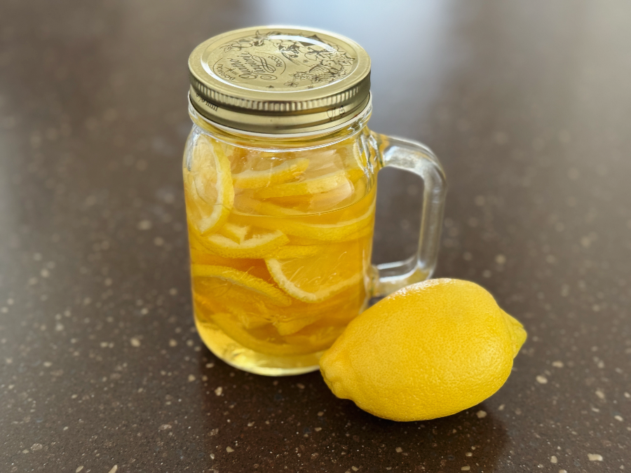 뜨거운 물에 열탕소독해서 말려둔 유리병에 레몬을 넣고 꿀을 부어주면 레몬꿀청 완성입니다~ 너무 간단하쥬?