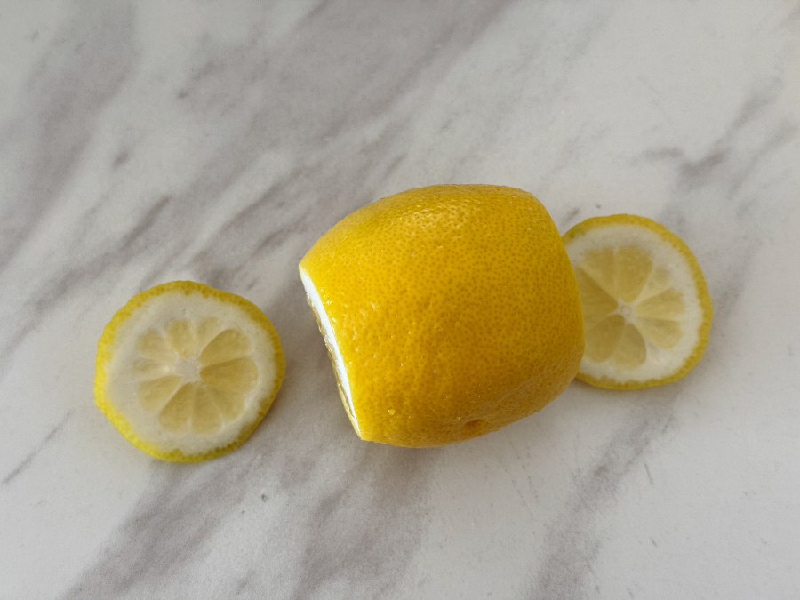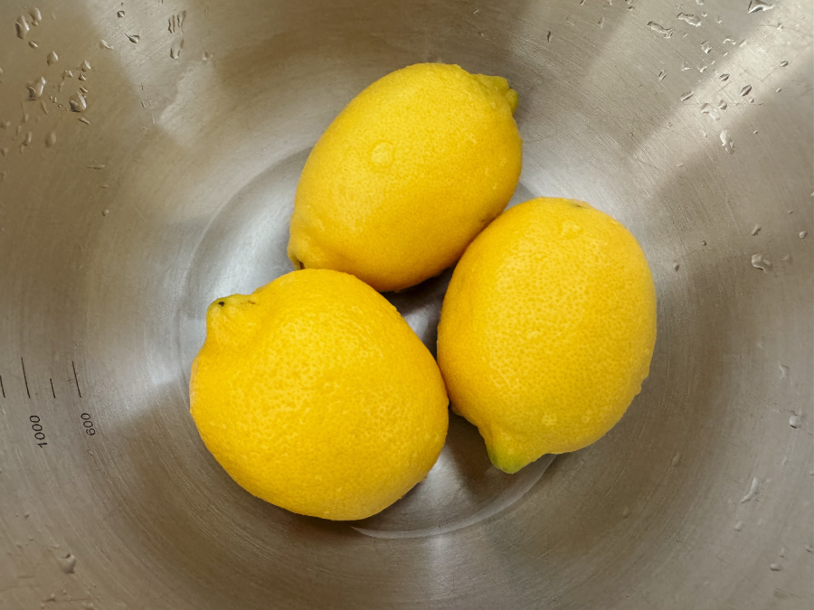 겉 표면에 왁스가 발라져 있는 레몬도 있기 때문에 물을 끓여서 레몬을 살짝 굴려가면서 겉 부분을 한번 더 씻어 주세요. 저는 전기포트에 물을 끓여서 레몬에 부어 헹궈준 후 건져냈답니다.