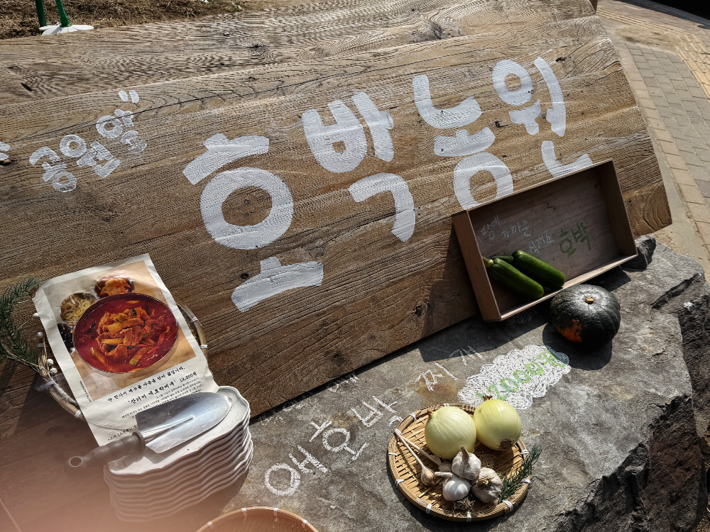 식당으로 들어가는 입구 근처에는 호박농원이라는 이름과 어울리는 컨셉으로 아기자기하게 꾸며져 있는데요. 늙은 호박과 단호박이 수레에서 반겨줍니다 :-)