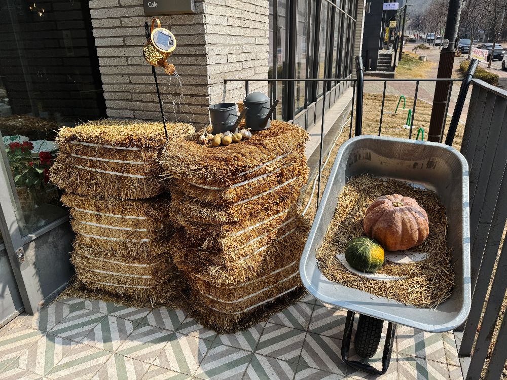 식당으로 들어가는 입구 근처에는 호박농원이라는 이름과 어울리는 컨셉으로 아기자기하게 꾸며져 있는데요. 늙은 호박과 단호박이 수레에서 반겨줍니다 :-)