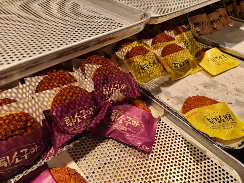 매장 안에 들어가면 줄을 서서 빵을 고르지 말고 자유롭게 이동하라고 직원들이 안내를 하는데요. 집게와 쟁반을 들고 요리조리 다니면서 빵을 담으면 됩니다. 빵이 빈 곳이 많았는데요. 고로케 맛이 궁금했는데 고로케는 하나도 없었.. 습니다. 다행히 튀김소보로는 종류별로 많이 남아있어 하나씩 맛볼 수 있었답니다.