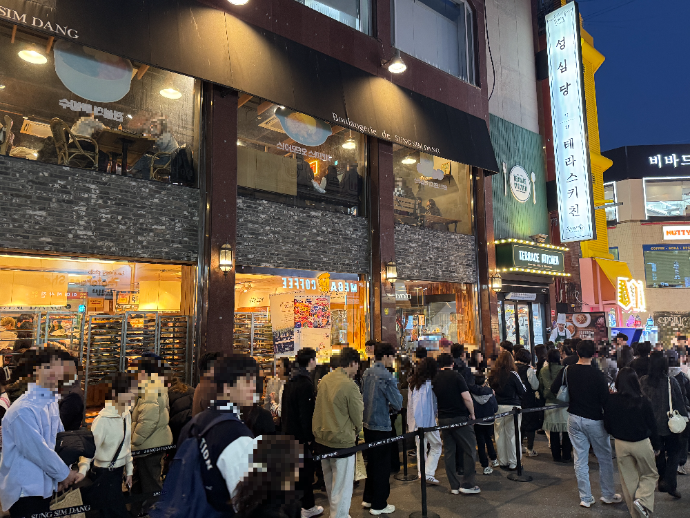 주말 오후 6시 성심당 본점과 성심당 케이크부띠끄 앞 사진입니다. 케익부띠끄는 매장 입구에 줄 서있는 사람들이 10명 남짓이어서 금방 안으로 들어갈 수 있었는데요. 본점에는 생각보다 많은 사람들이 줄을 서 있었답니다. 줄이 좀 길었지만 십 여분정도 기다려서 매장으로 들어갈 수 있어서 많이 기다리진 않았습니다.