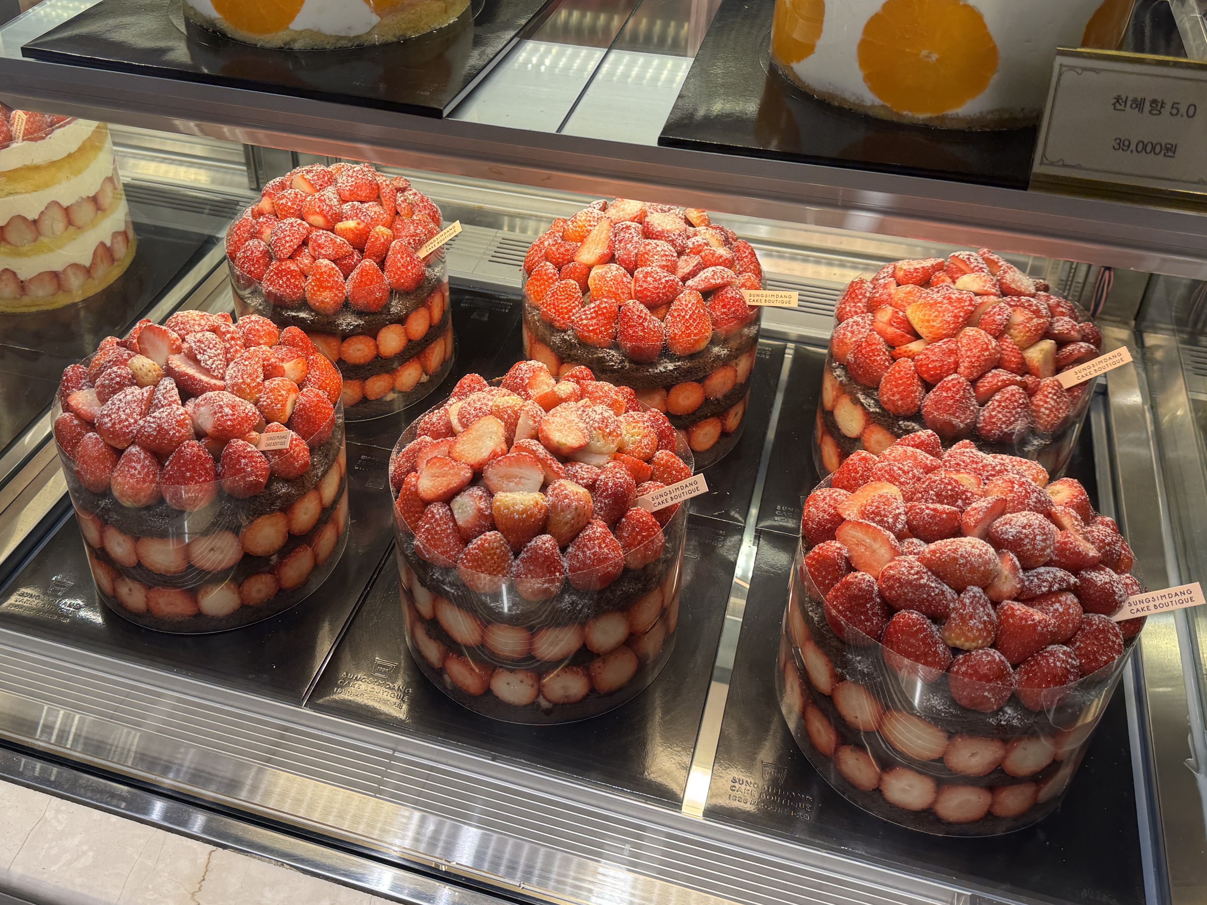 케익을 먼저 사기 위해 케익부띠끄부터들어갔답니다.케익부띠끄에는 다양한 디저트류들이 있었는데요. 빈 곳은 거의 없고 제품들이 많이 남아 있었습니다. 딸기 시루만 생각하고 와서 다른 건 뭘 사야 할지 보고만 있었는데.. 짝꿍은 어느새 본인이 좋아하는 티라미수롤을 집어 들고 있더라고요. 저는 얼떨결에 앞에 있던 분이 푸딩을 한가득 사가는 걸 보고 따라서 푸딩을 쟁반에 담았.. 답니다. 사고 싶은 걸 미리 생각하고 오시면 좋을 것 같아요~ 아니면 무조건 충동구매하게 된답니다..