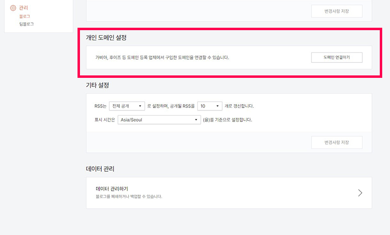 티스토리에서의 설정은 가비아 DNS 설정에 비해 아주 쉽습니다.