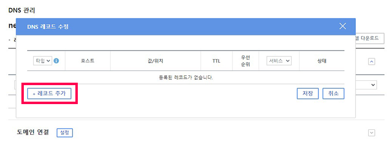 우리가 구매한 도메인 이름을 티스토리의 IP로 바꿔주는 작업을 여기에서 먼저 설정해 주는 것입니다.