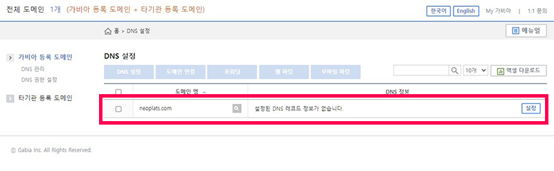 가비아에서 하는 DNS 설정은 이것이 끝입니다.