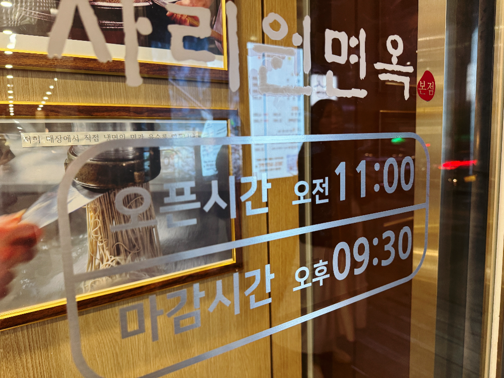 성심당에서 빵과 케이크를 잔뜩 산 뒤 두루치기 맛집인 진로집으로 갔는데.. 저녁시간이라 그런지 대기줄이 꽤 길었습니다. 배가 너무 고파 줄을 서서 기다릴 수가 없는 상태였던 짝꿍과 저는 근처에 있던 다른 식당으로 갔는데요. 70년 4대째 내려오는 대전의 맛집이라는 문구에 이끌려 사리원면옥으로 갔답니다. 1952년부터 4대째 가업을 이어오고 있다는 사리원면옥으로 함께 고고씽해요~